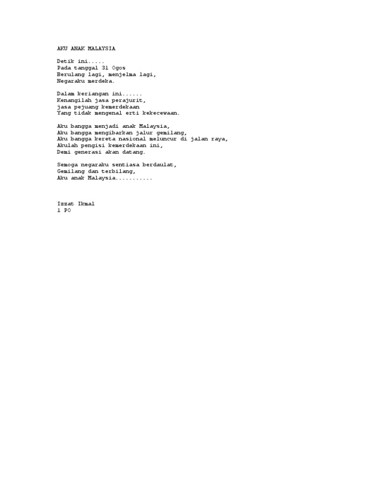 Negara Malaysia tanah pertiwi. Edg6e32 said this on September 14 2009 at 539 am Reply. Antologi sajak cermin diri Meniti Waktu.