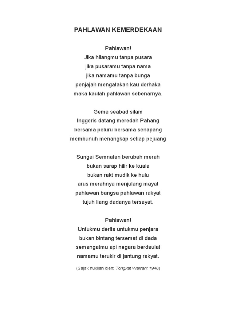Selepas malaysia merdeka dan negara mula dibangunkan sedikit demi sedikit terdapat jurang antara kemewahan bandar dan kemiskinan desa kemewahan orang bukan melayu dengan. SAUDARA PENGARANG MERDEKAKAH aku Di saat negara ku dilanda bencana Virus meragut nyawa Politikus terkinja melalak inginkan kuasa Menyanggah Raja tanpa susila. Bgus la org2 yg wat sajak nikeep on going.